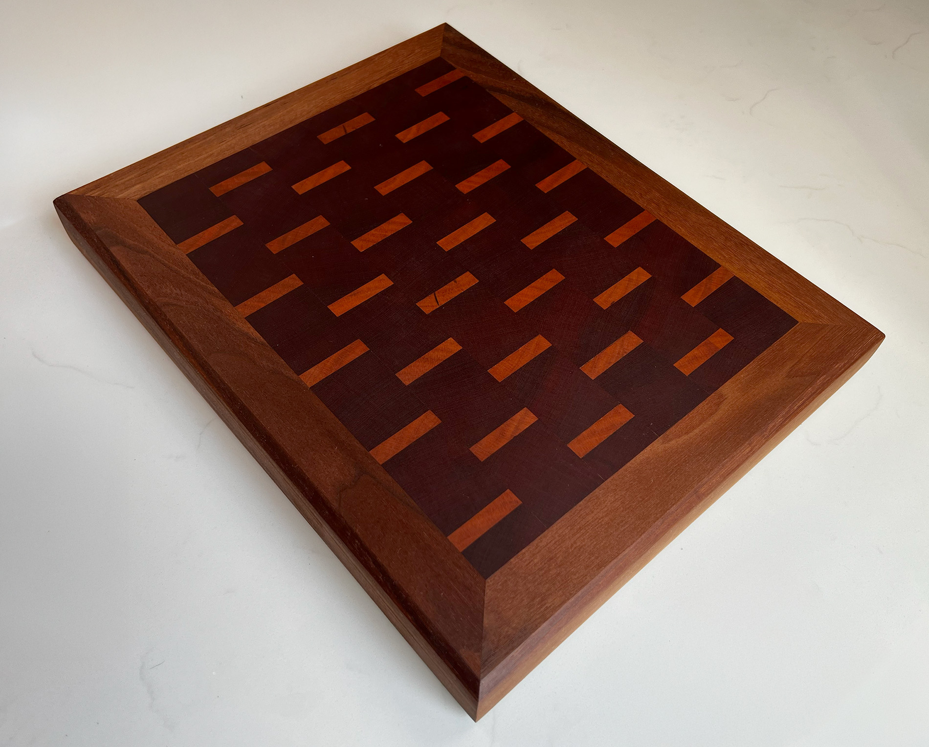 Crafted from rich walnut, warm sapele, and vibrant cherry, this checkered butcher block is as beautiful as it is functional. The end-grain construction provides a durable, knife-friendly surface that’s perfect for everyday prep work while showcasing the natural contrast of these premium hardwoods. Each board is meticulously handcrafted, making it a stunning centerpiece for your kitchen and a reliable tool built to last for years.
